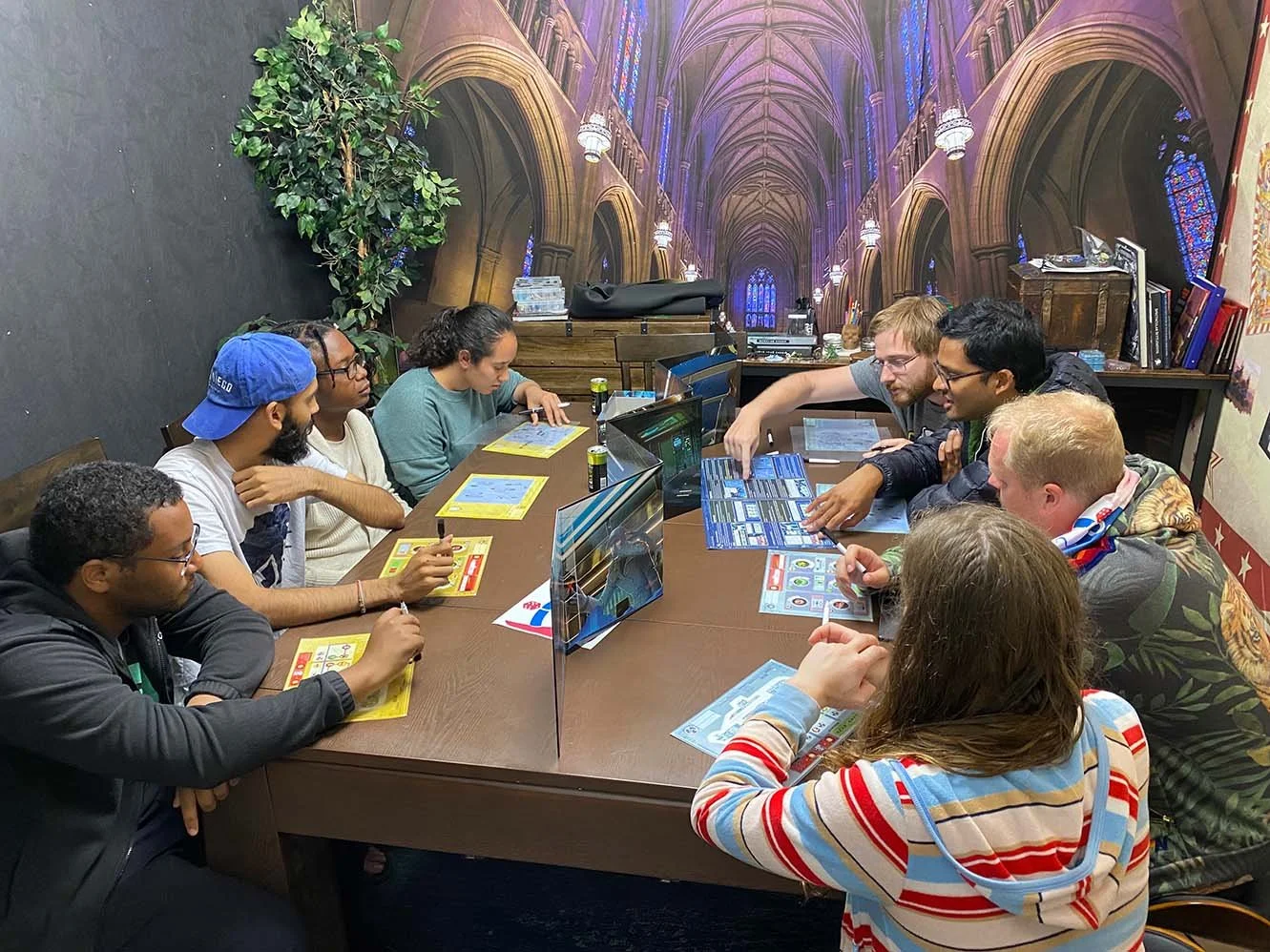 Large Group pricing is available for groups of 7-15 and costs $8/hr per person. If available, Large Groups are booked in our Private Rooms or our largest Regular Tables. This is due to the space required and the noise of full, fun group games! This ensures all Dogpatch Games customers can enjoy the best board gaming experience available.